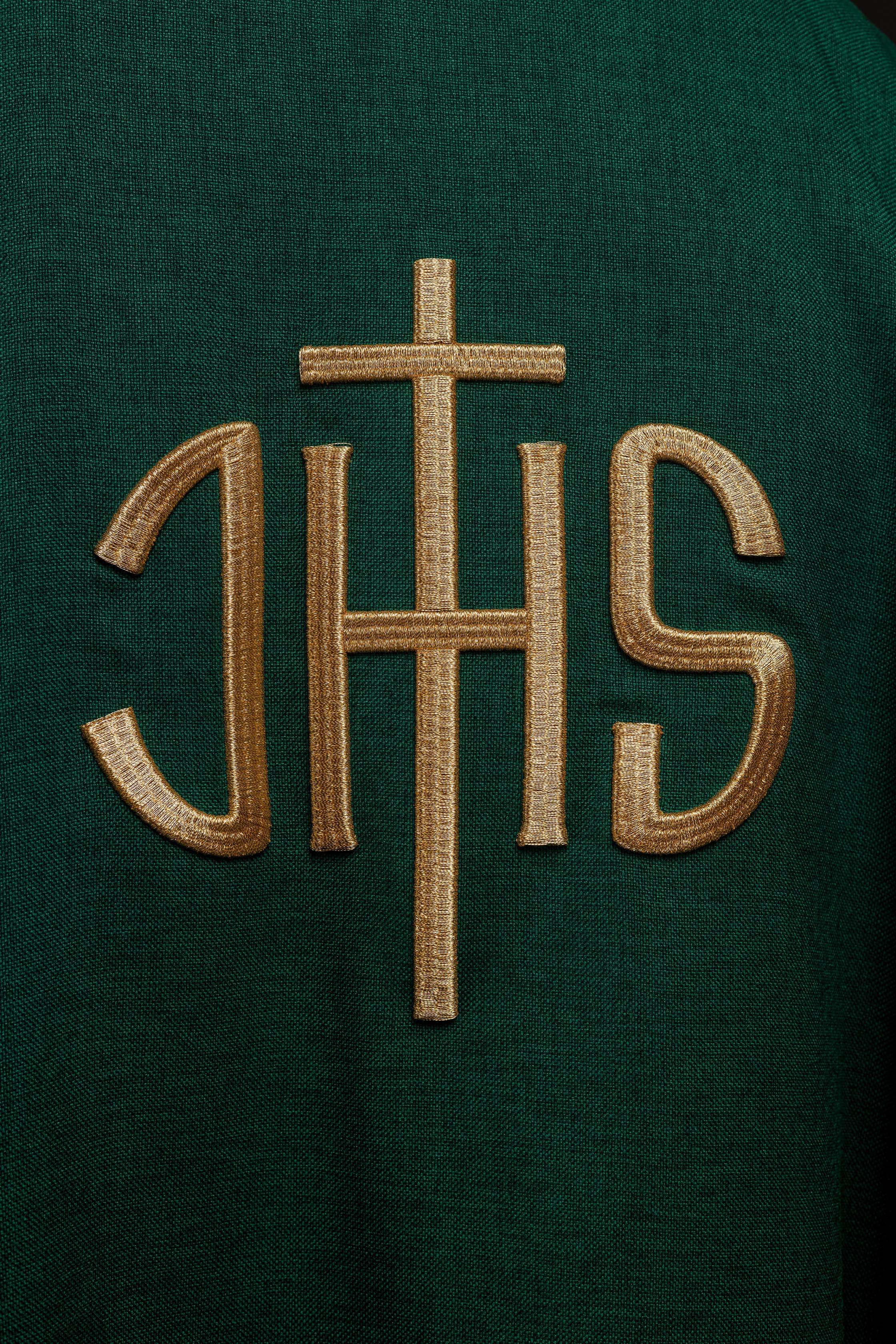 Ensemble de calices en velours vert avec symbole IHS brodé