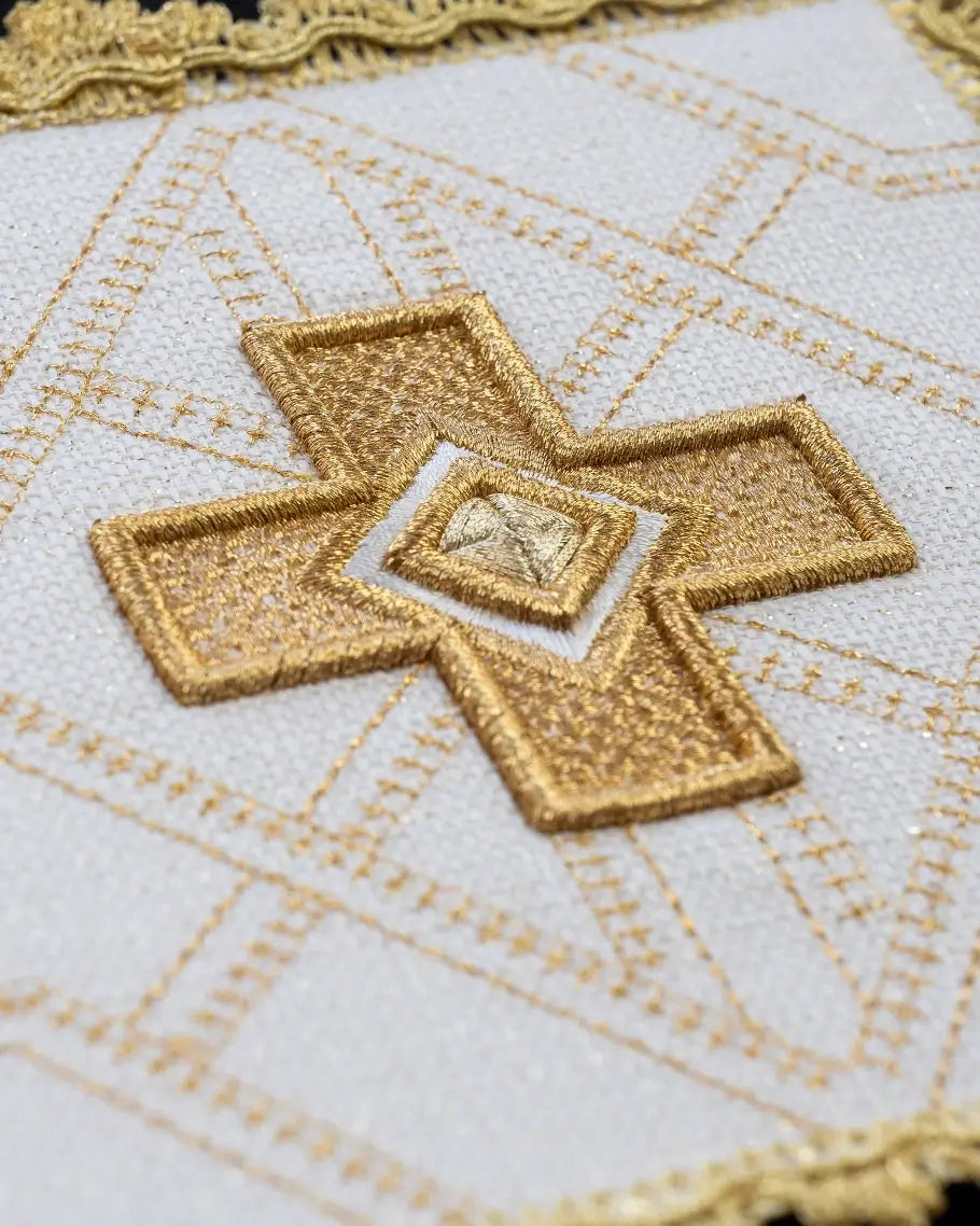 Chasuble écrue en tissu jacquard à croix